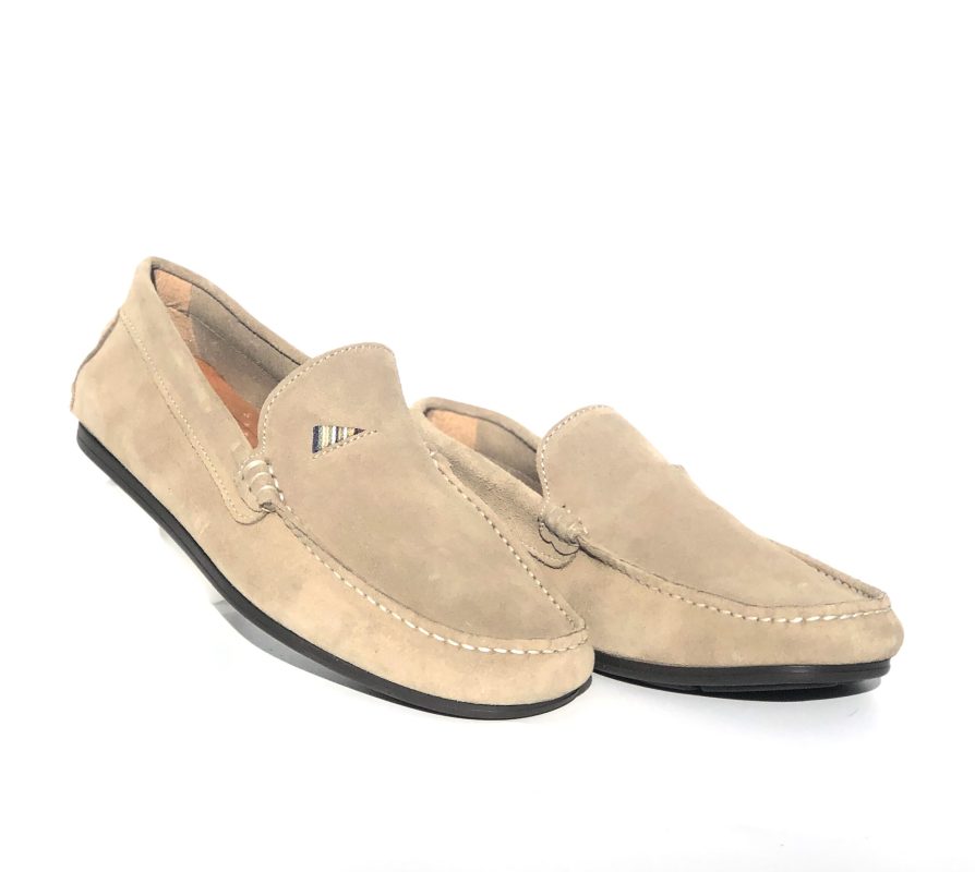 Mocassini artigianali in camoscio beige
