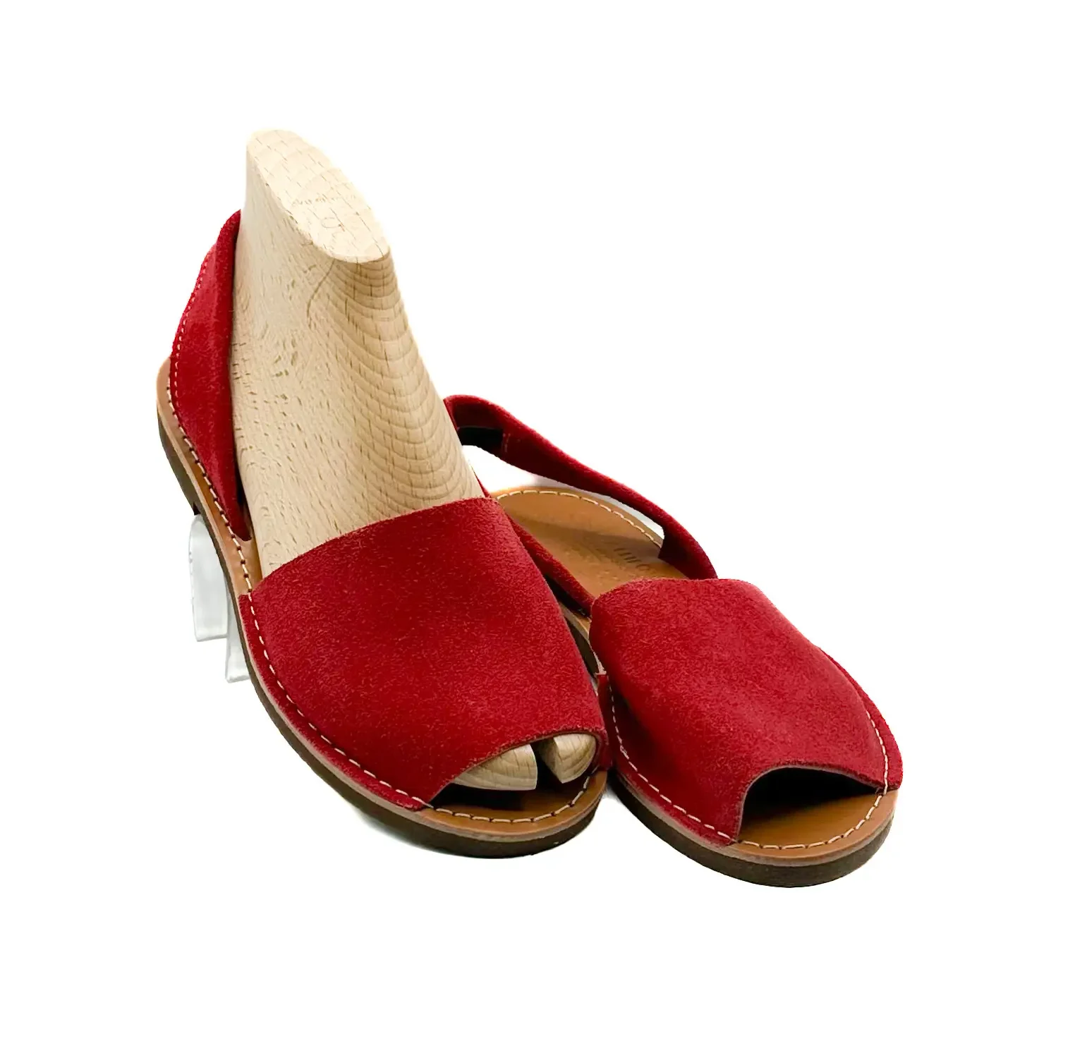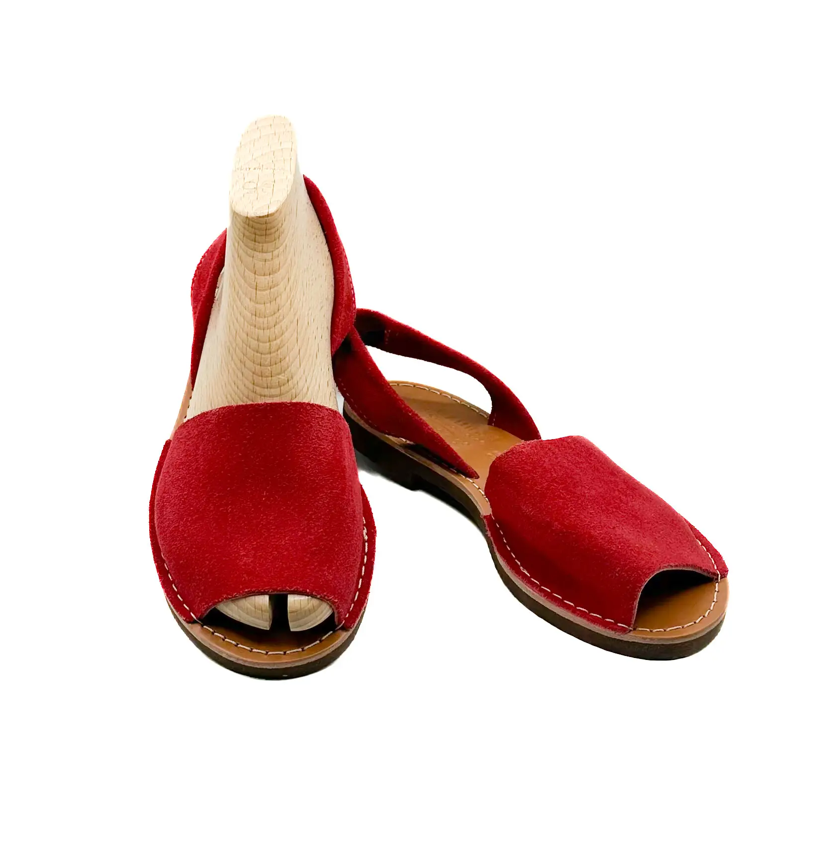 Handmade red suede Menorquinas.