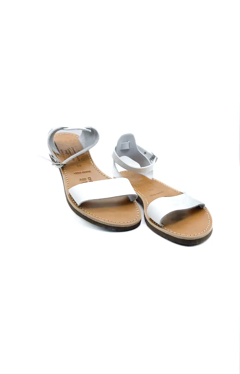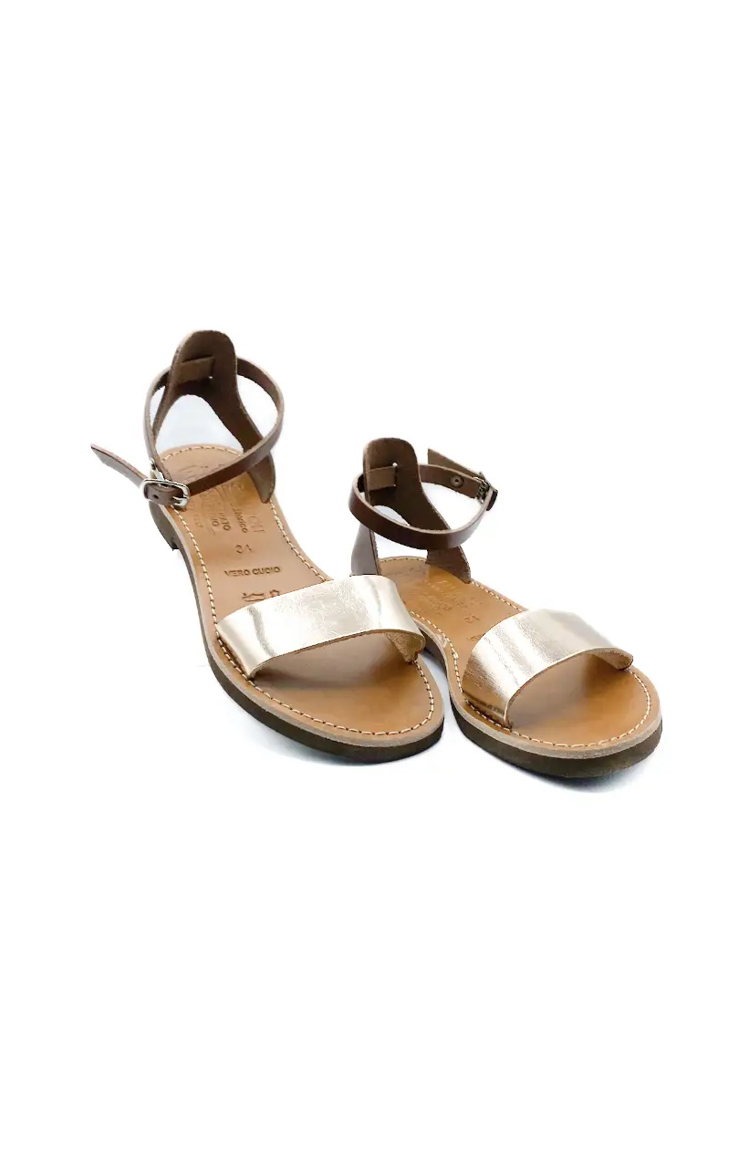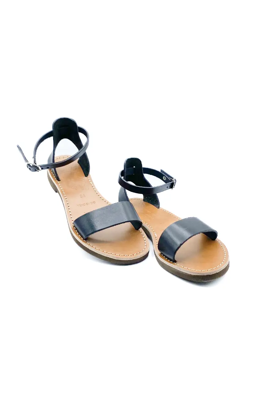 Women’s low handmade sandals with a performance strap. Leather upper, leather insole, and lightweight micro rubber sole. Ankle bracelet closure.