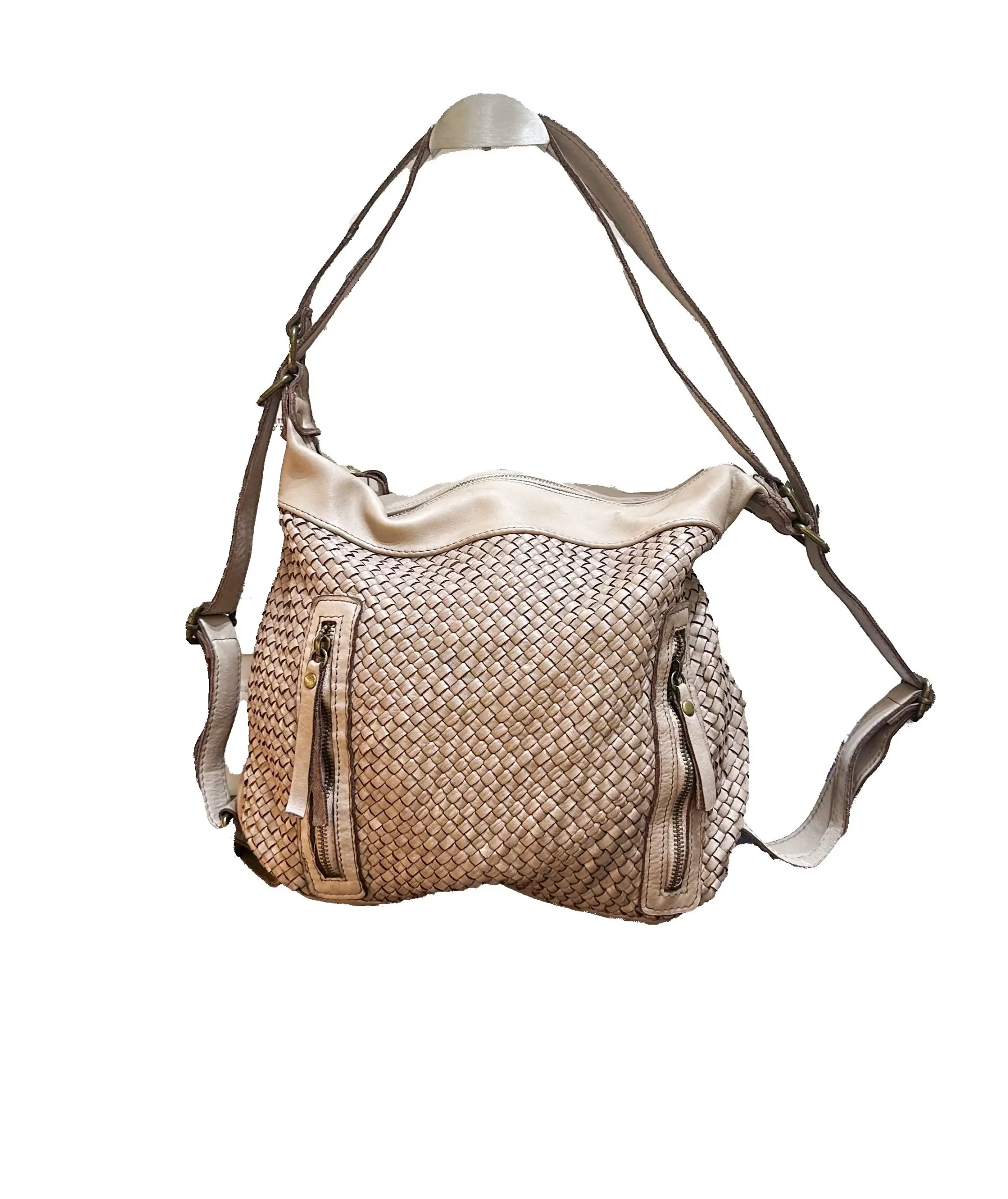 Made of genuine woven leather, this bag/backpack combines artisanal elegance with everyday practicality. Thanks to its versatile design, it can be worn as either a backpack or shoulder bag. Spacious and functional, it features convenient zippered pockets, perfect for accompanying you in style on any occasion.