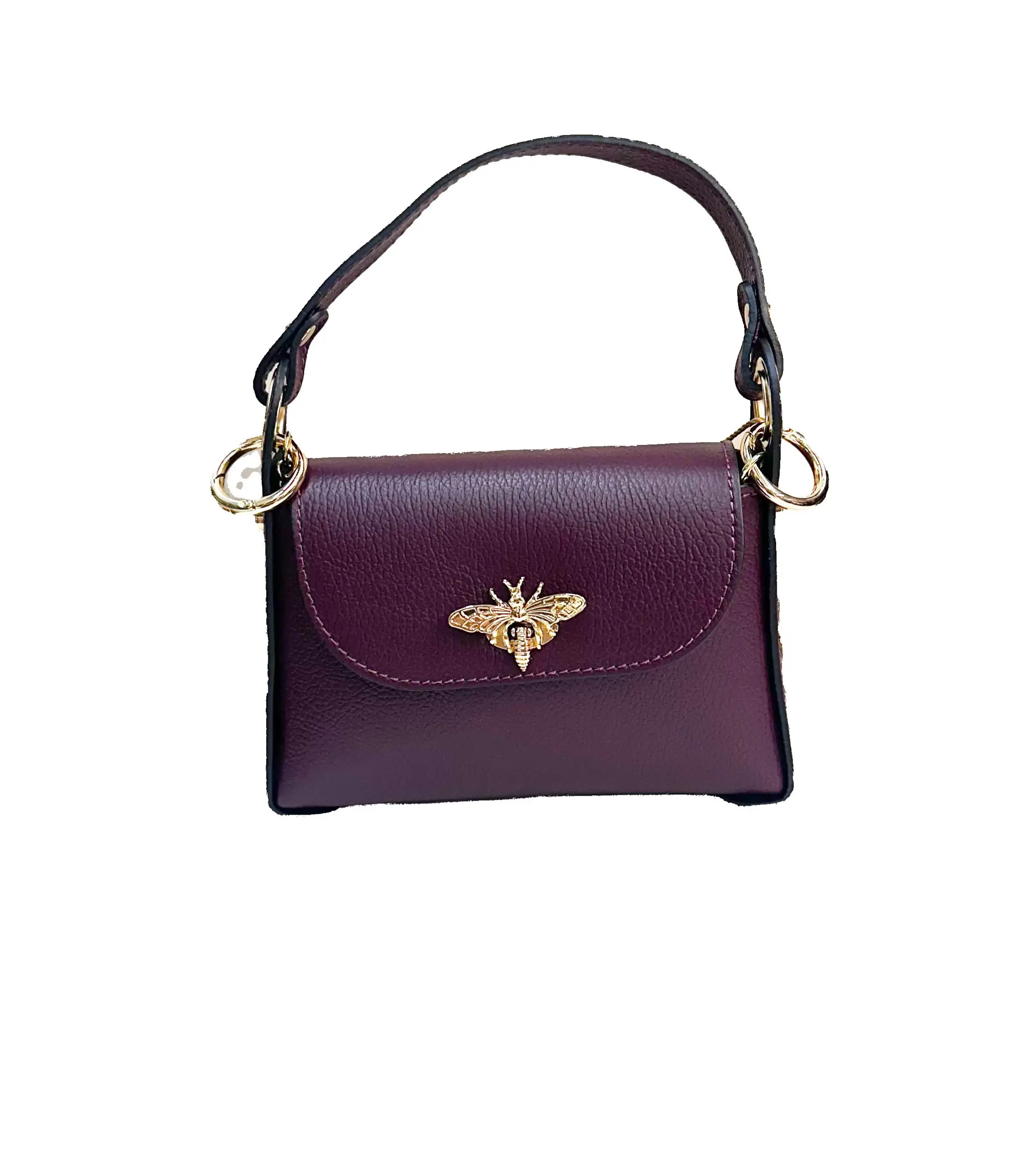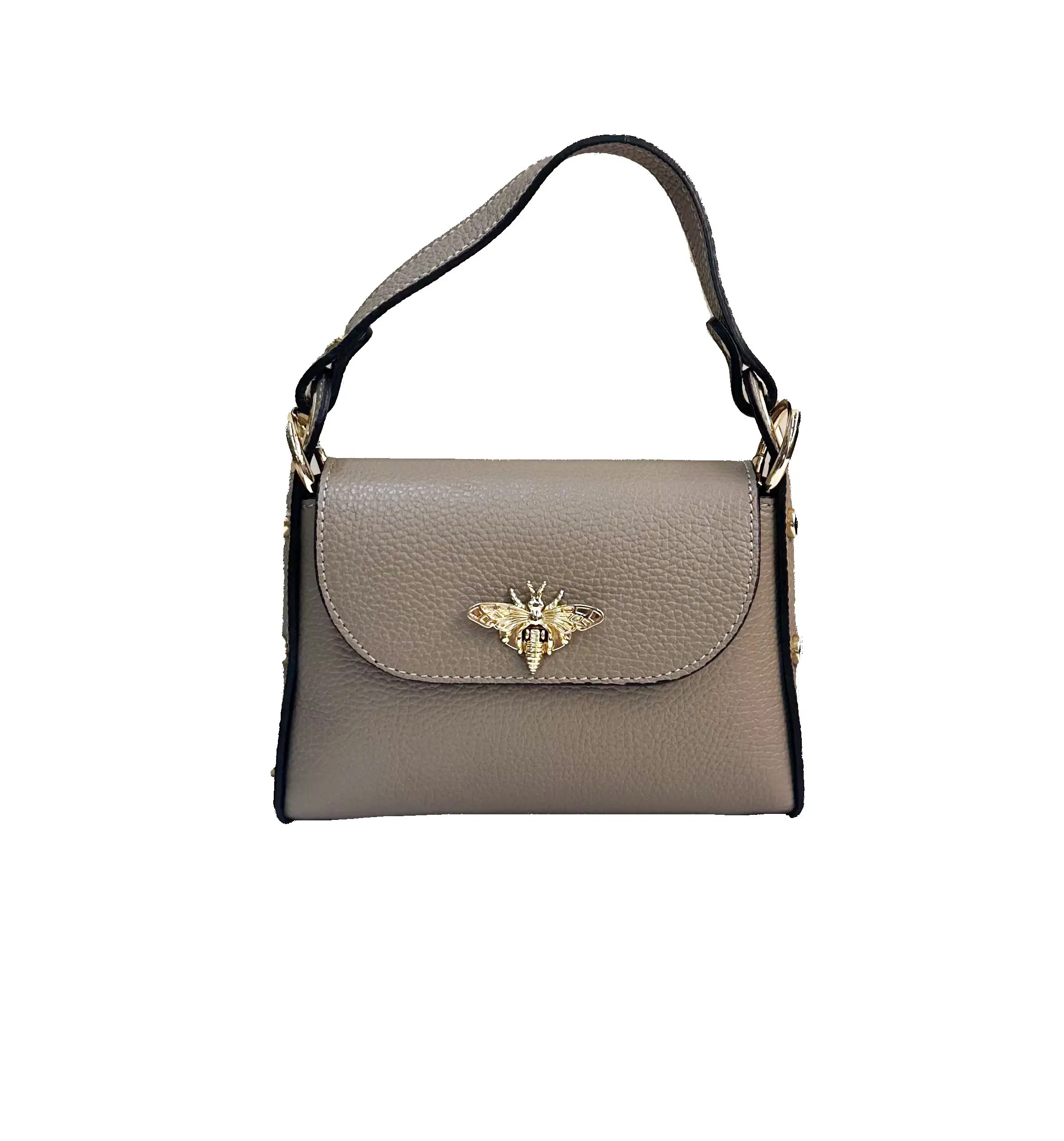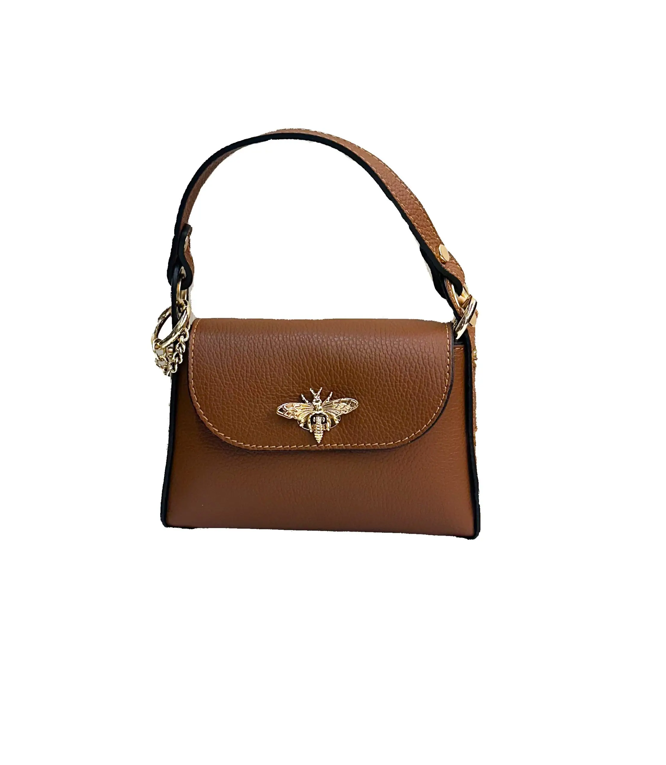 Bolso de piel con abeja dorada