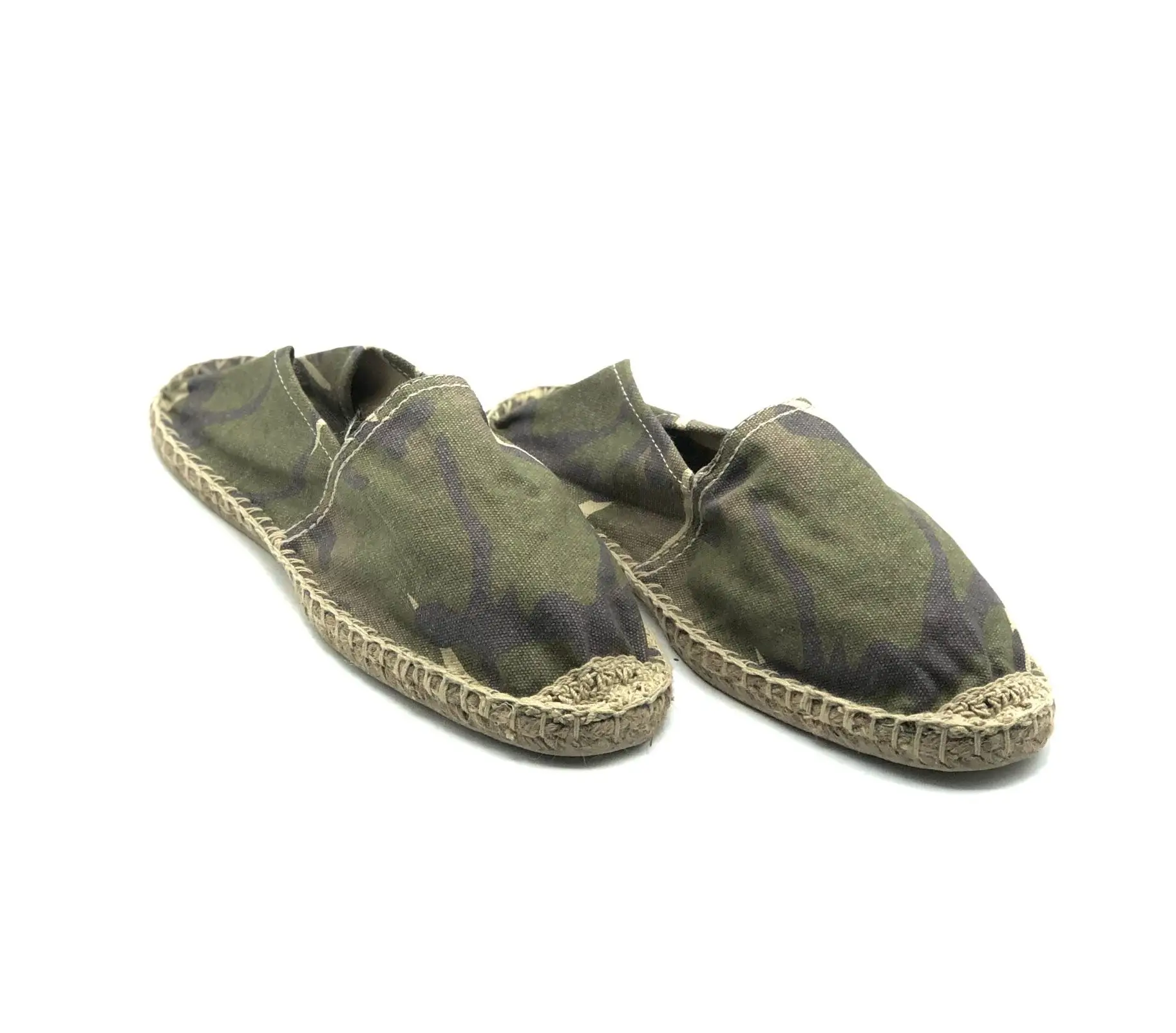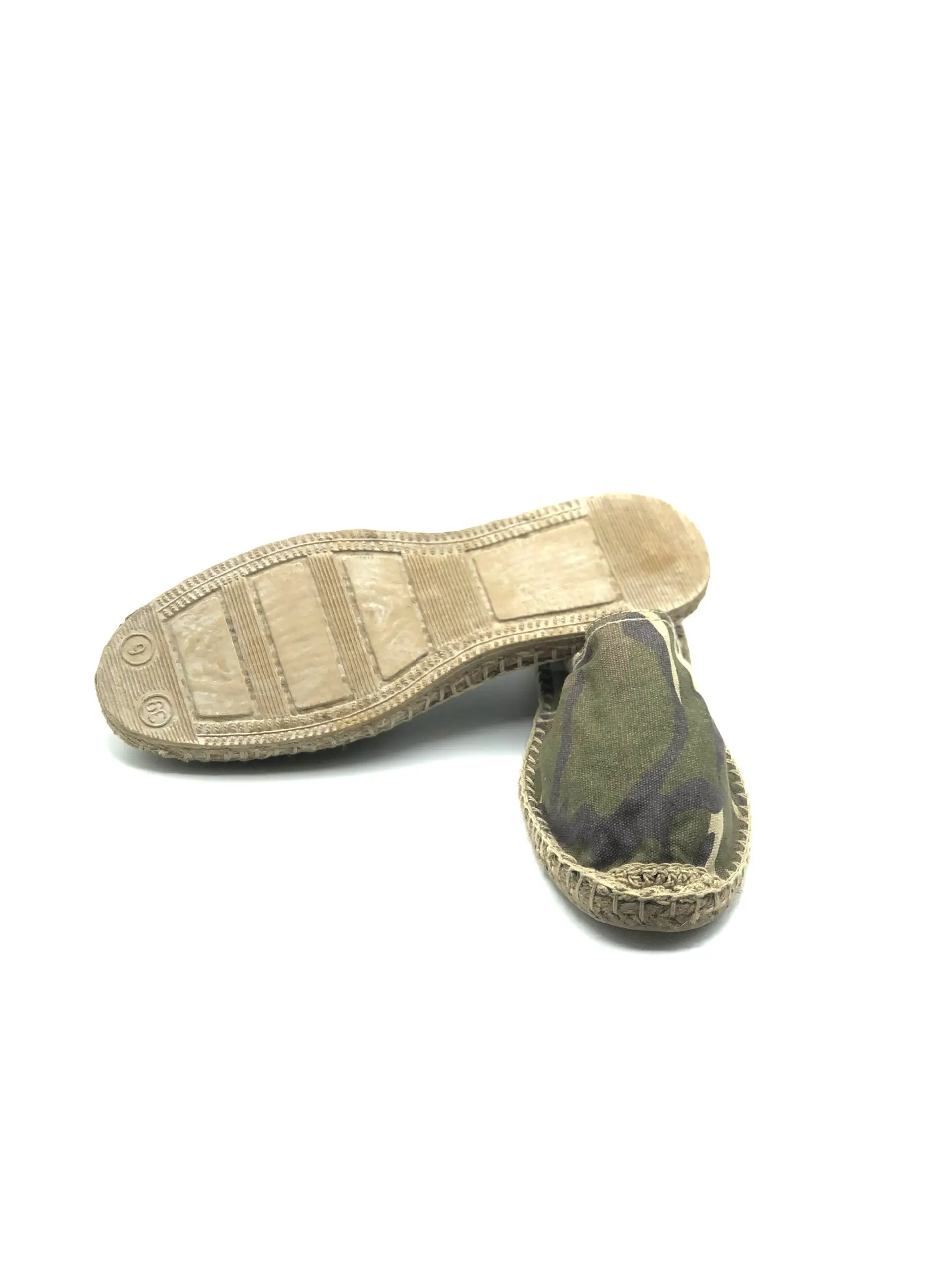 Espadrillas bajas para mujer y hombre, de lona de algodón con motivo de camuflaje (militar), con suela cosida de cuerda y plantilla de tejido. Fina capa de caucho para proteger la cuerda de la suela.