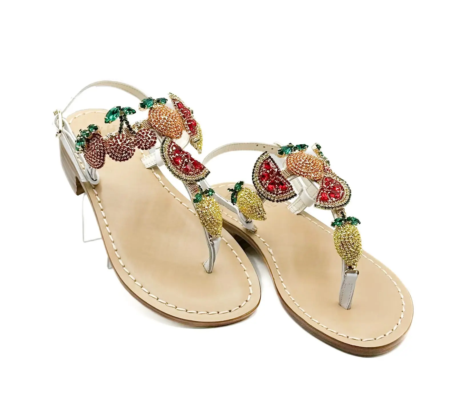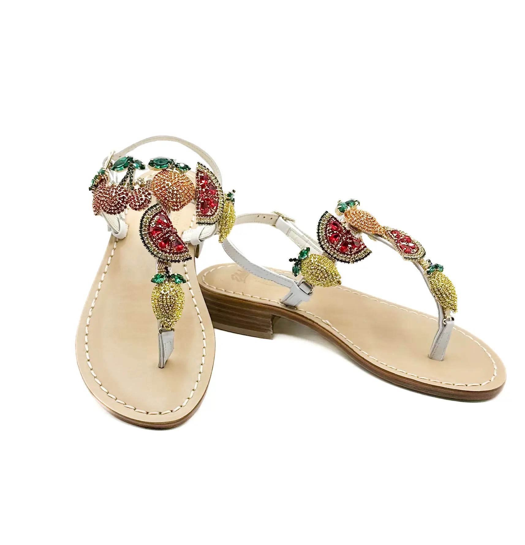 Sandalias joya artesanales con diseño de dedo y motivos frutales