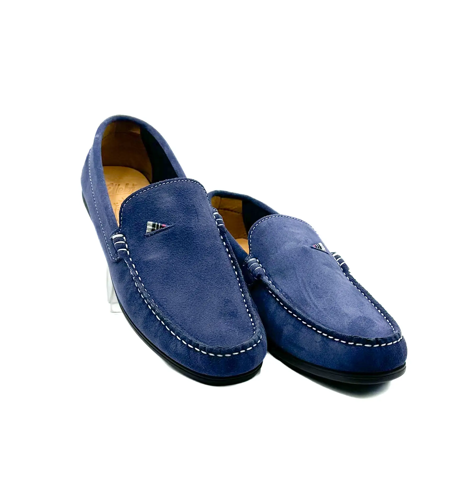 Mocassini artigianali in camoscio blu navy