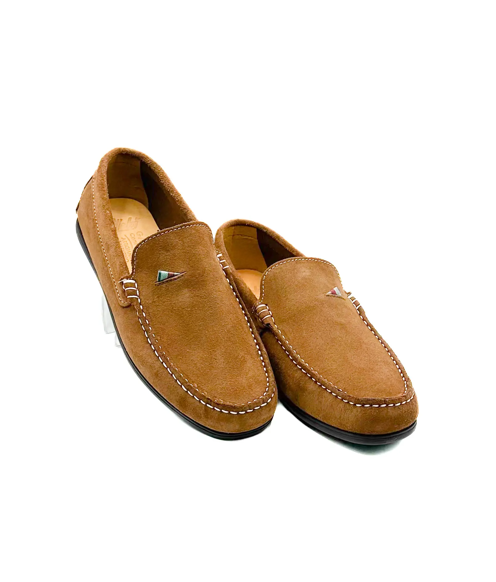 Mocassini artigianali in camoscio marrone