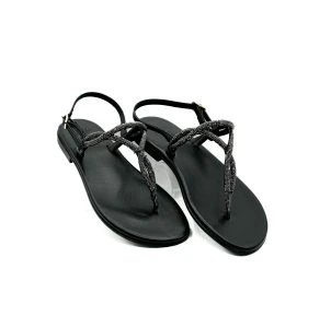 Il design elegante è impreziosito da un raffinato intreccio con dettagli luminosi che donano un tocco di classe senza rinunciare alla semplicità.  Il cinturino regolabile assicura una calzata stabile, mentre la struttura lo rende ideale per un utilizzo quotidiano, dalle passeggiate estive alle serate più chic.