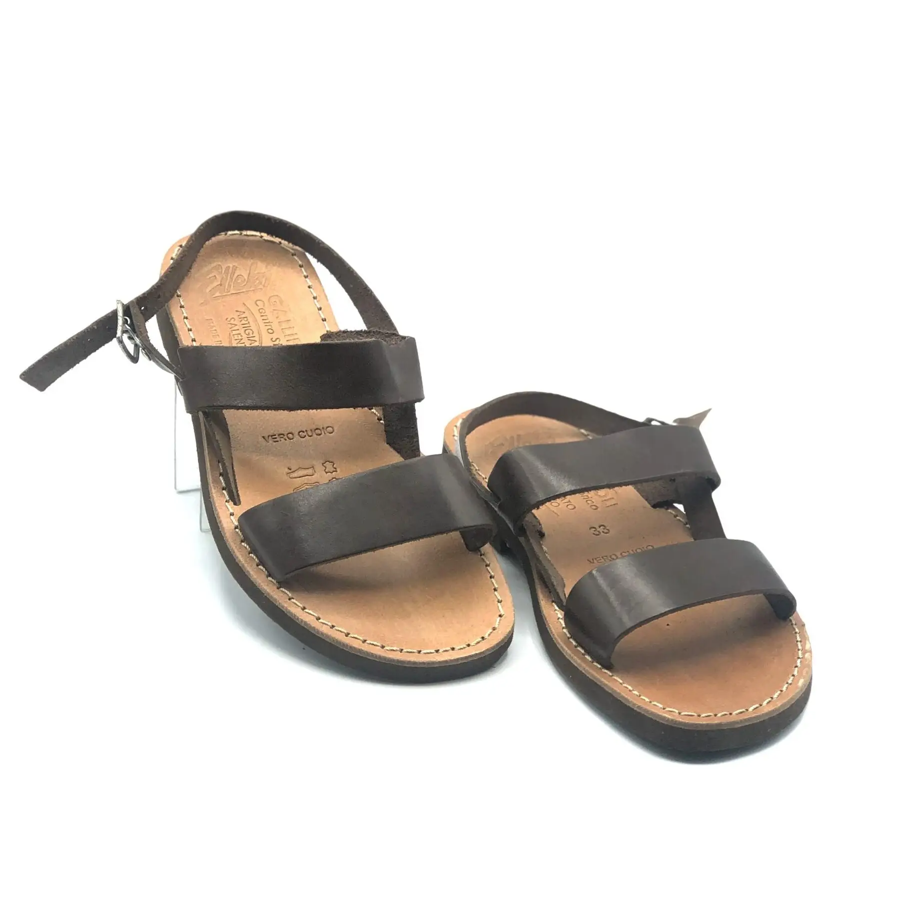 Детские ремесленные сандалии, модель monacale с двумя ремешками из мягкой телячьей кожи и ремешком на пятке. Обувь как для девочек, так и для мальчиков.