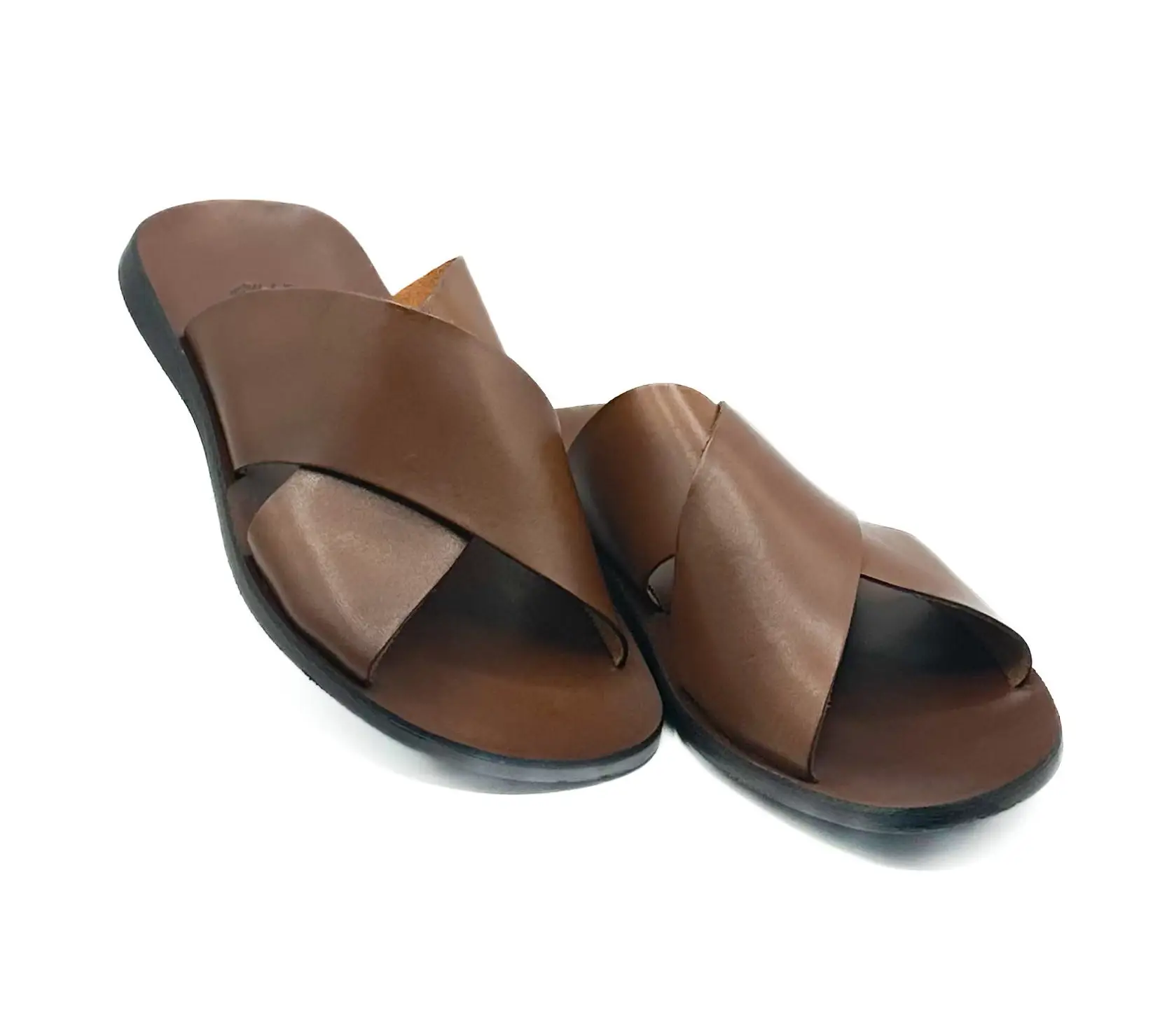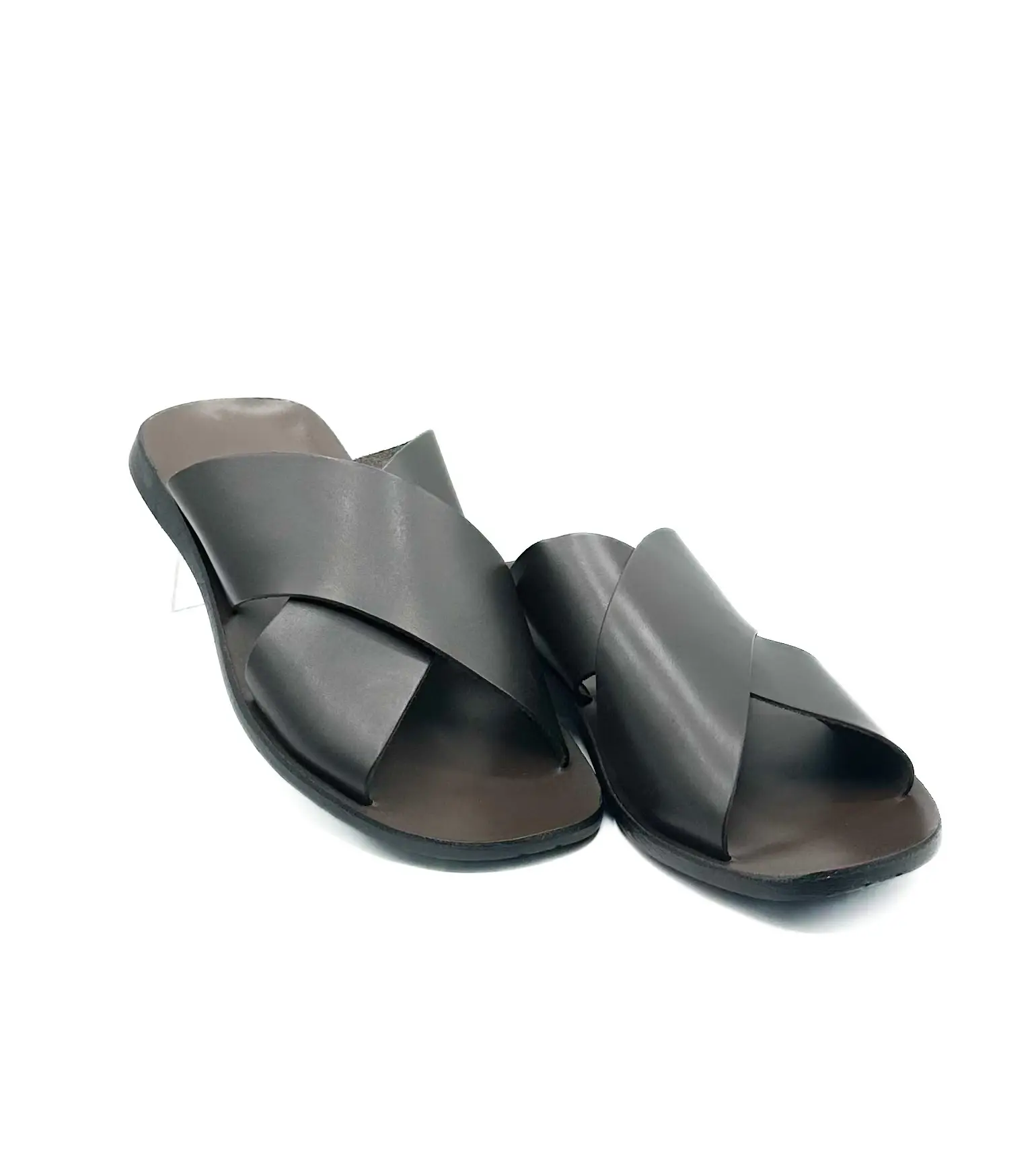 Мужские кожаные шлепанцы с перекрещенной полосой