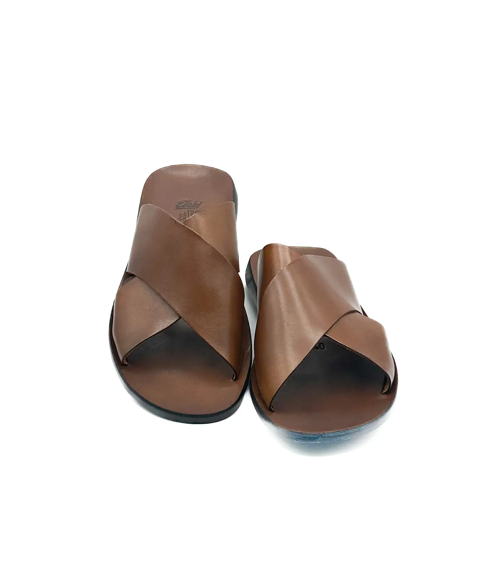 Мужские ремесленные шлепанцы с широкой перекрещенной полосой из мягкой кожи, удобно облегающей подъем стопы. Верх из телячьей кожи, анатомическая стелька из кожи и жесткая резиновая подошва.