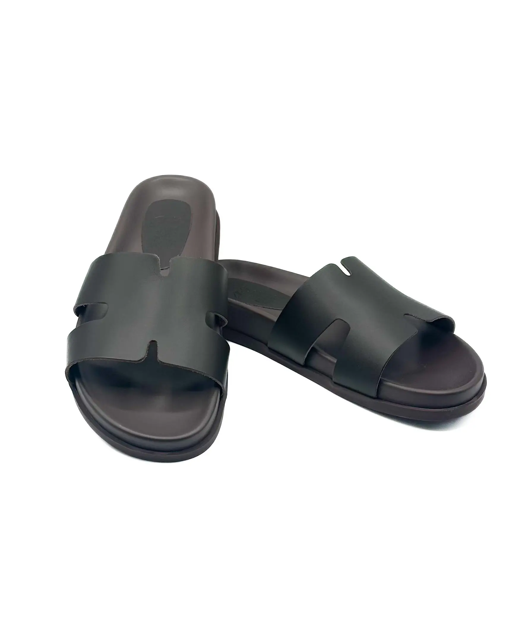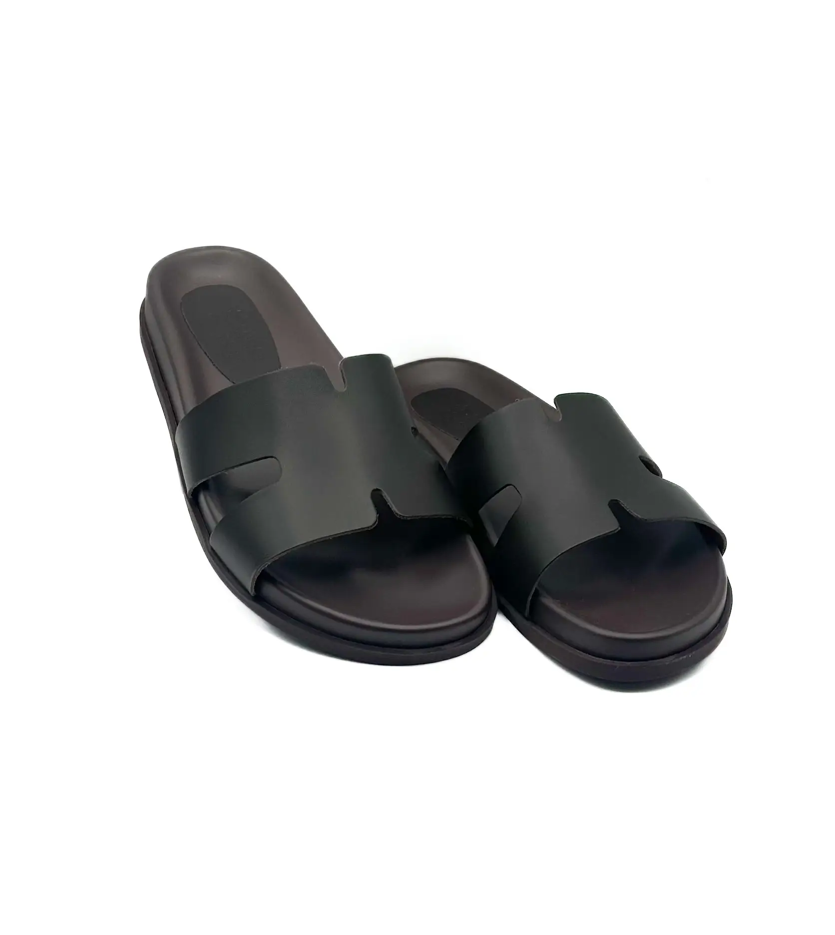 Мужские шлепанцы ручной работы, модель «Hermès», из отборной кожи. Верх с H-образным ремешком и анатомическая стелька обеспечивают отличную поддержку стопы. Лаконичная модель ручной работы, сочетающая в себе функциональность, комфорт и современный стиль.