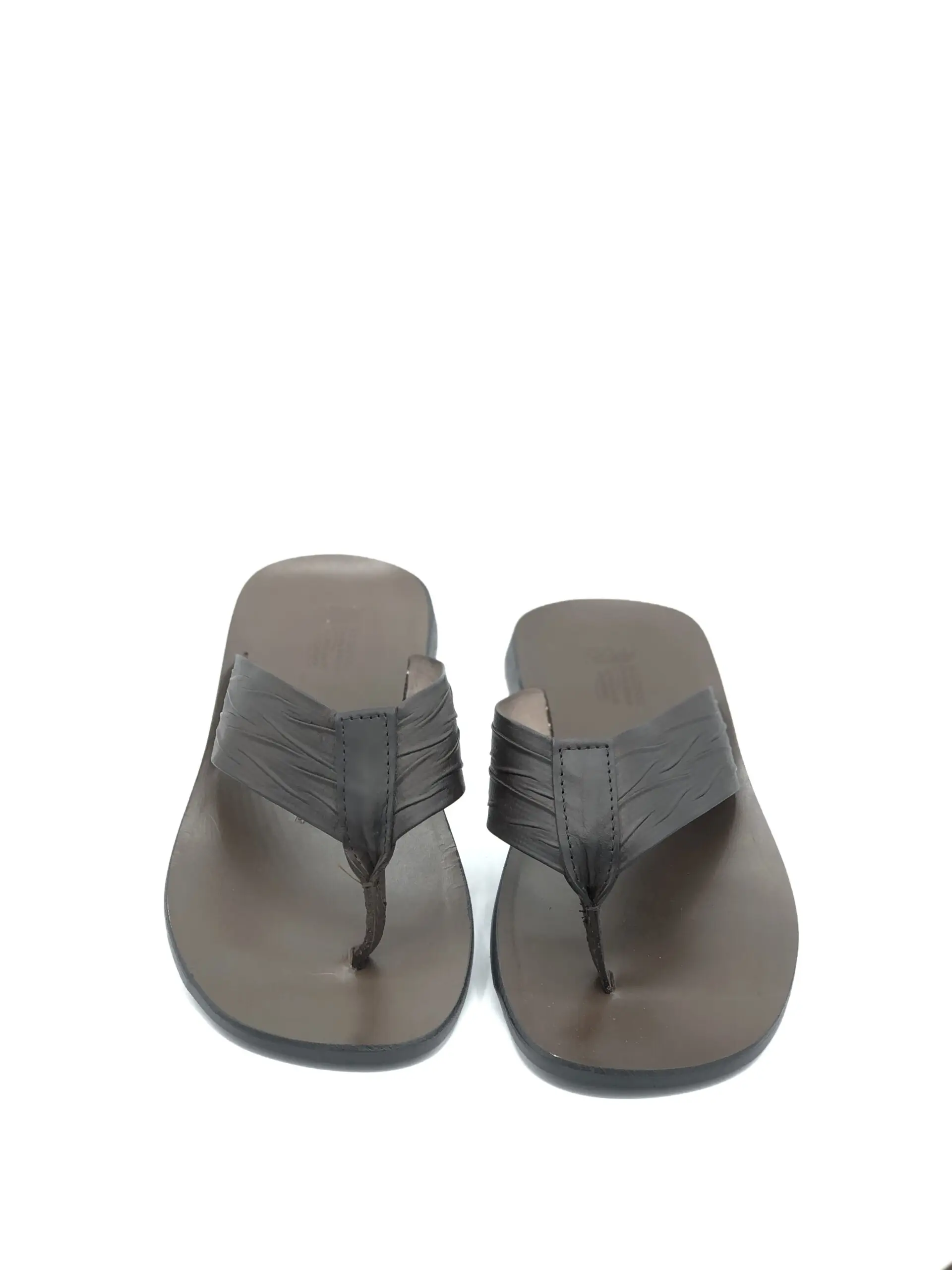 Ремесленные мужские шлепанцы с широким ремешком между пальцами из мягкой кожи, удобные для подъема стопы. Верх из телячьей кожи, анатомическая стелька из кожи и жесткая резиновая подошва.