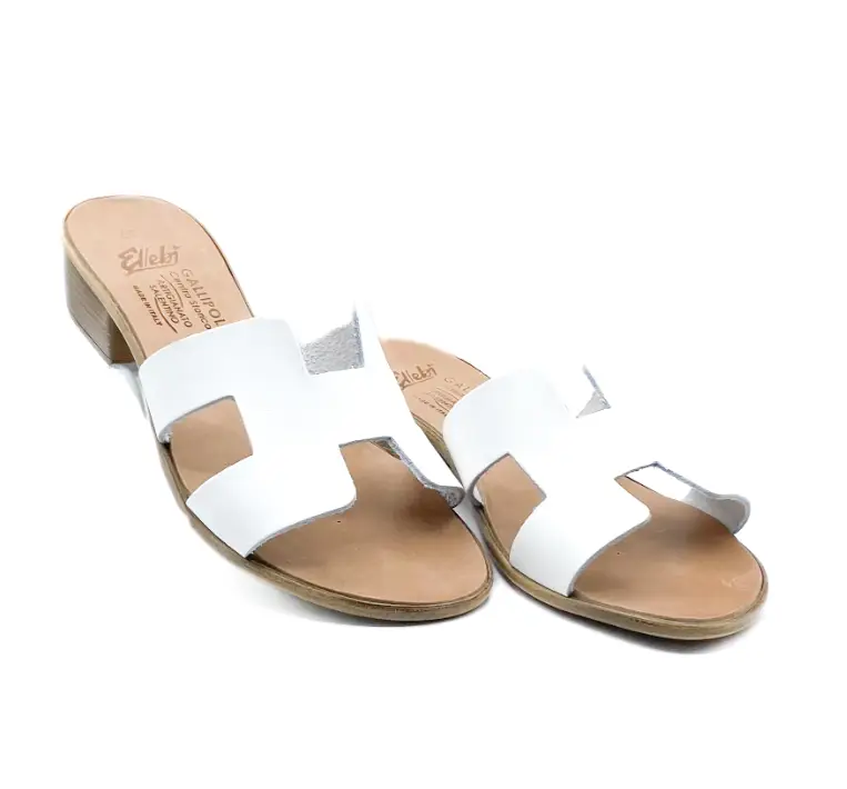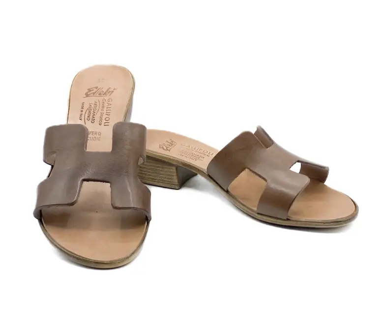 Женские ремесленные шлепанцы модель Hermes с квадратным каблуком. Верх из телячьей кожи. Стелька, подошва и квадратный каблук из кожи.