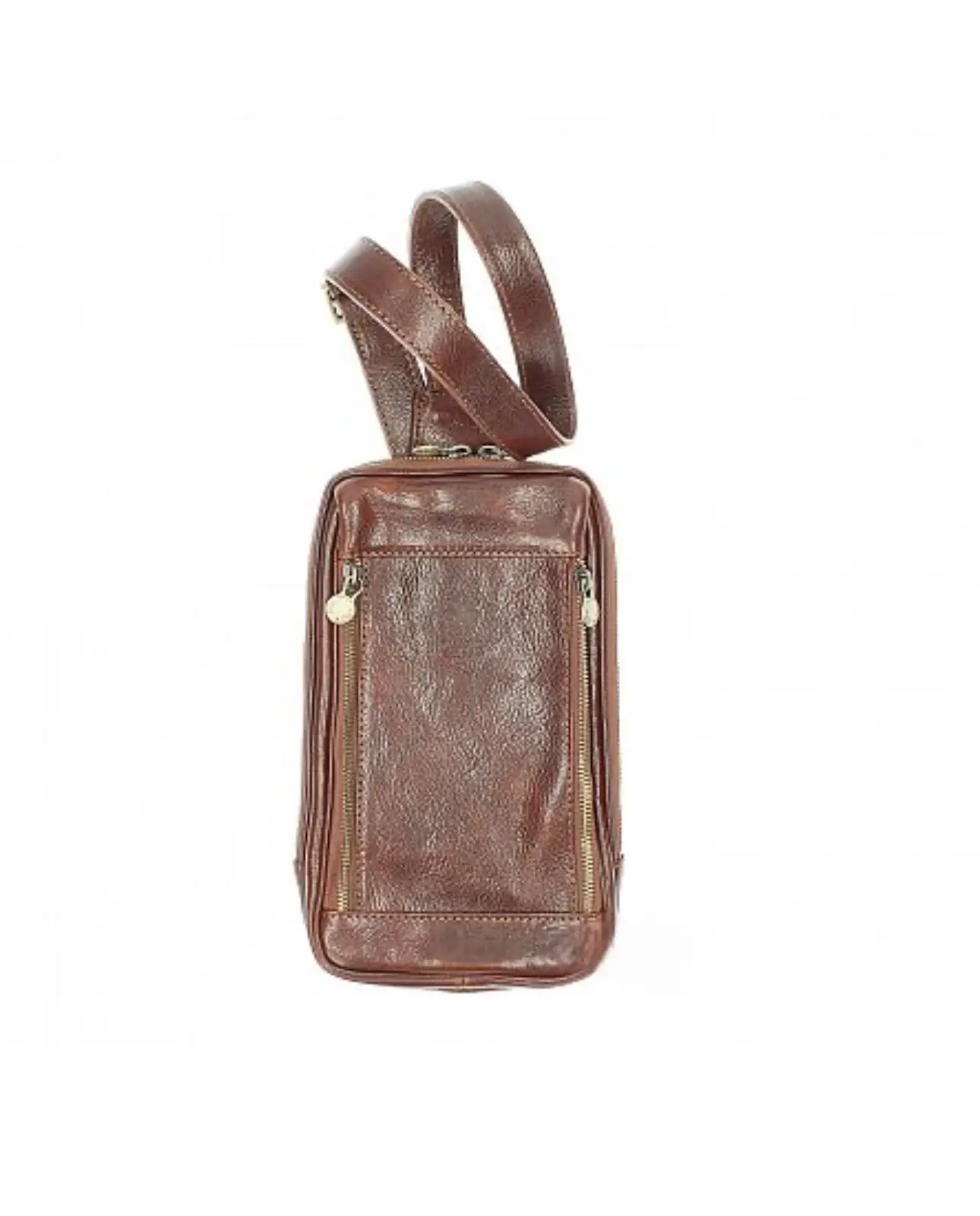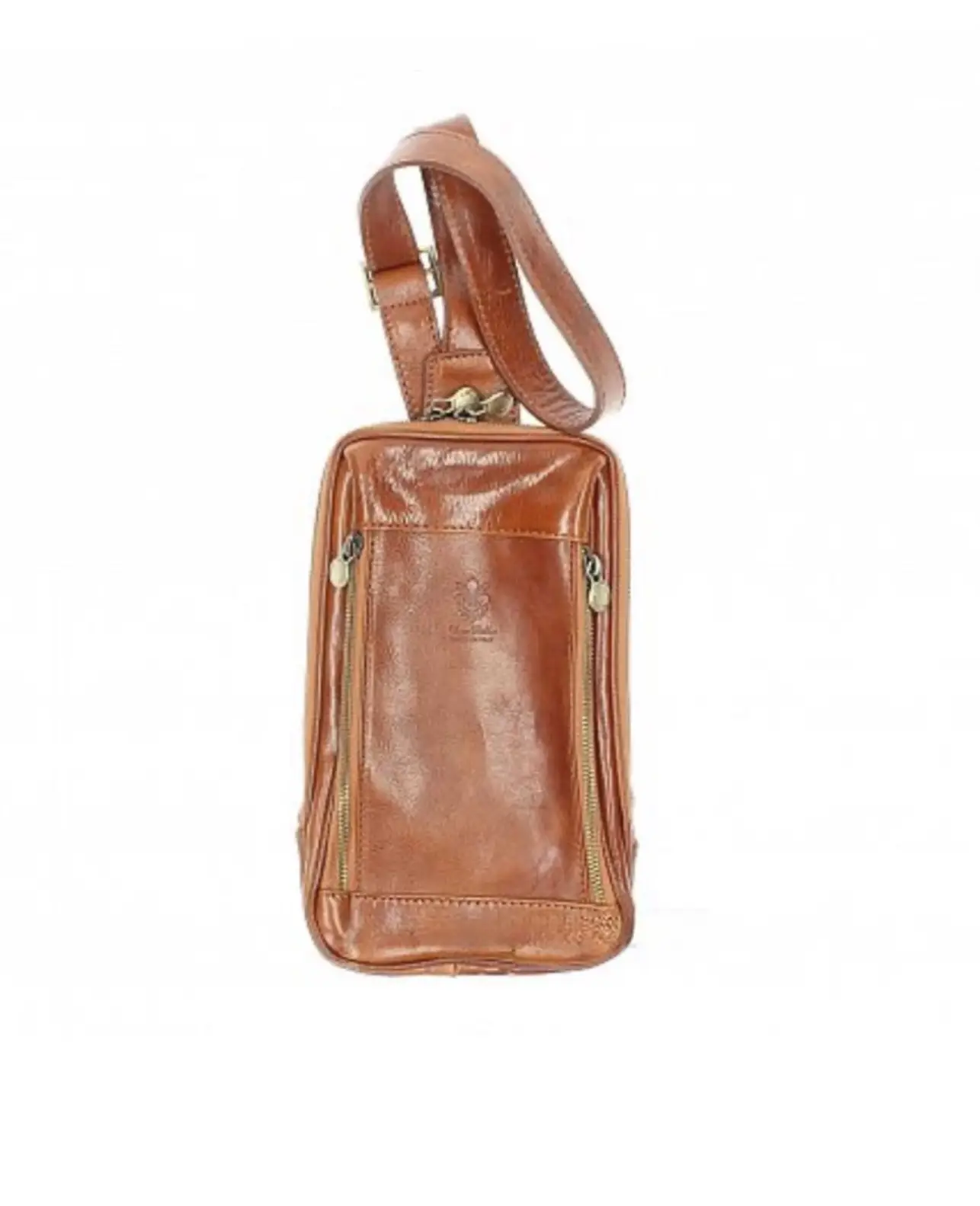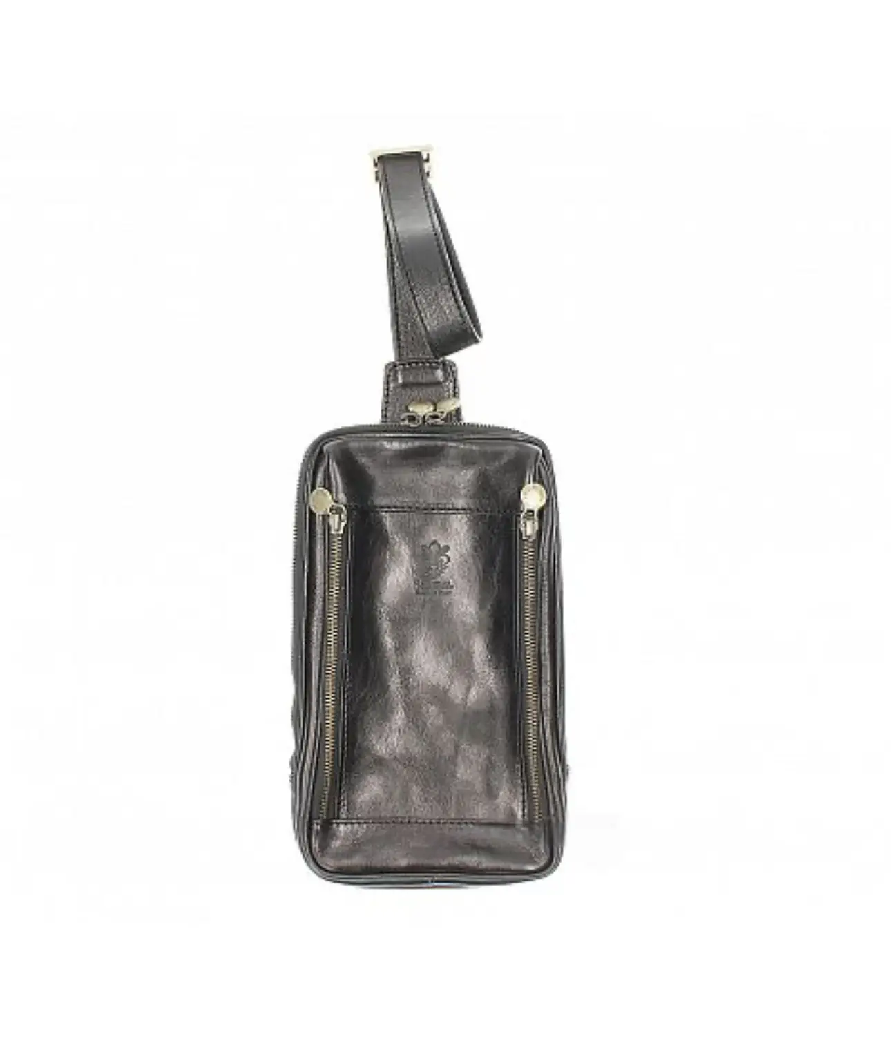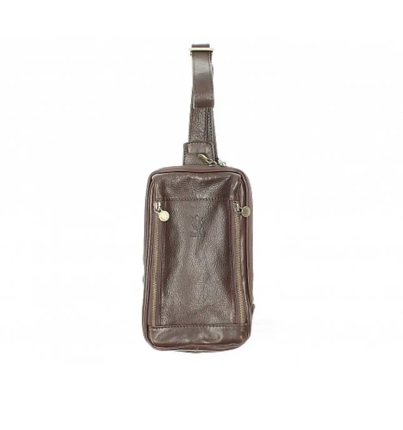 男士真皮单肩腰包,单层主隔层设计,可调节肩带,配有拉链外袋。 此包由意大利工匠使用托斯卡纳真皮手工制作。